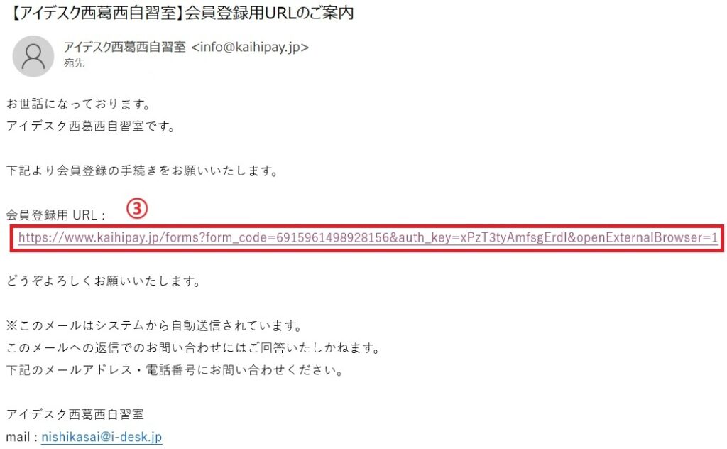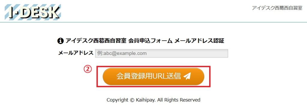 ①入会希望のお客様は、以下リンク「入会フォーム 会員登録はこちら」よりEメールアドレス登録画面へお進みください。